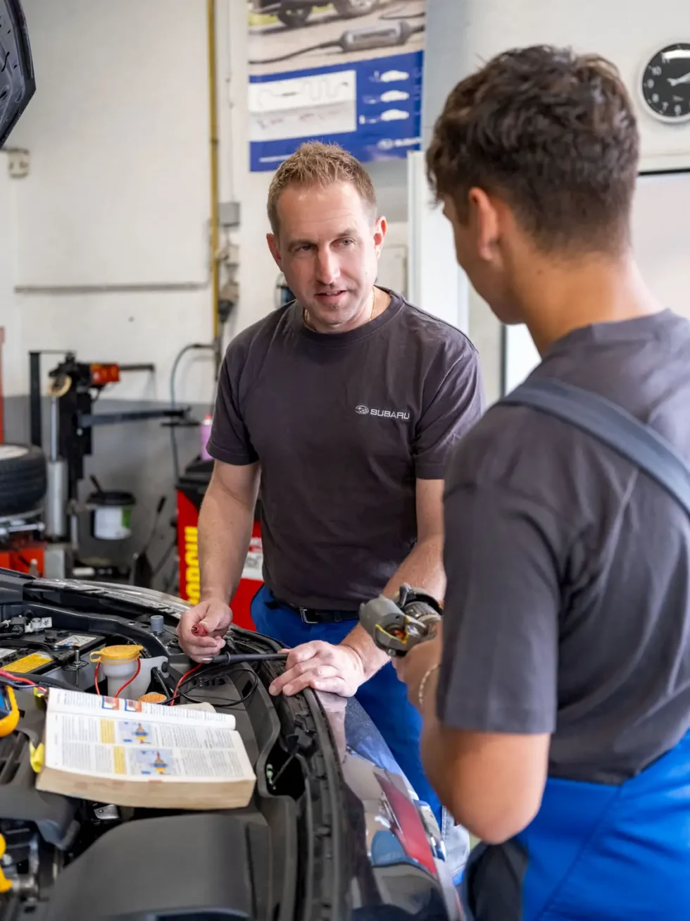 Als langjährige Subaru Markenvertretung und Garage Plus Partner bieten wir erstklassigen Service, Reparaturen und Diagnosearbeiten in unserer modernen Werkstatt an. Unsere langjährigen Mechaniker sind spezialisiert auf Subaru Modelle und führen auch Serviceleistungen für Fahrzeuge aller anderen Marken und auch bei Elektro- und Hybridfahrzeugen durch. Unsere Dienstleistungen umfassen Reifenservice mit Einlagerung, MFK-Vorbereitung, Klimaanlage-Service, Carrosserie und Lackierung, Fahrzeugcheck, Bereitstellen eines Ersatzautos, Fahrzeugreinigung und vieles mehr. Dabei werden Sie von unserem erfahrenen Team fachmännisch und effizient beraten. Für Ihre Fragen und Anliegen sind wir gerne da.